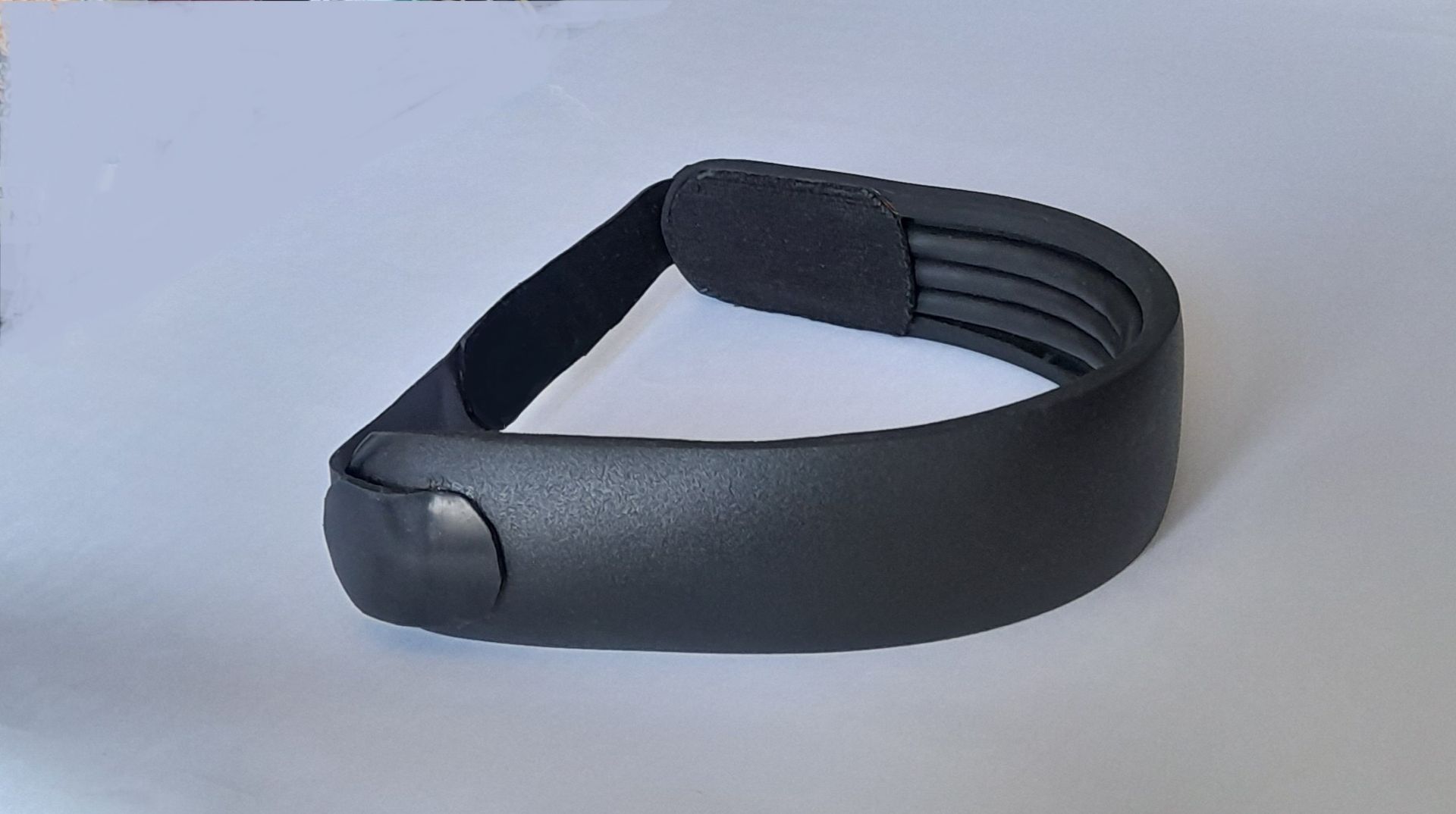 LE BULLDOS-SWIM PROGRESS SE PORTE DE FAÇON TRANSVERSALE DE L'ARRIÈRE À L'AVANT DE LA TÊTE AVEC LES DEUX BANDES JAUNES SUR LE FRONT , PROGRESS EST UNE INNOVATION FORMIDABLE POUR LA NATATION DU FUTUR .